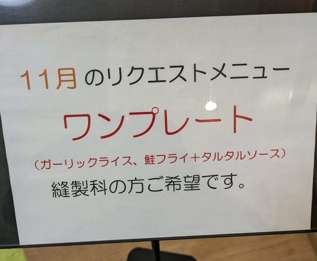今月のリクエストメニューは、香ばしいガーリックライス🧄を中心とした洋風ワンプレートをお届けしました。